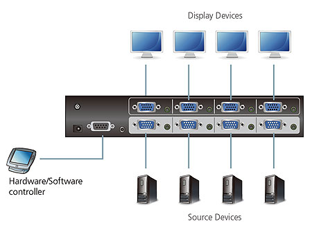 Копания ATEN начинает выпуск нового матричного переключателя видеосигналов VGA 4х4 со звуком.