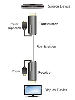 HDMI удлинитель VE872/VE873, принцип действия которого основан на преобразовании электрических сигналов в оптические и обратно, позволяет подключить HDMI устройства отображения на расстоянии до 15 /30м от источника сигнала.
