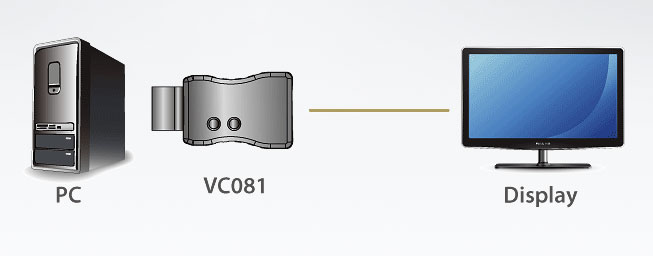 VC081 подключается в разъем видеокарты источника, а монитор подключается в эмулятор.