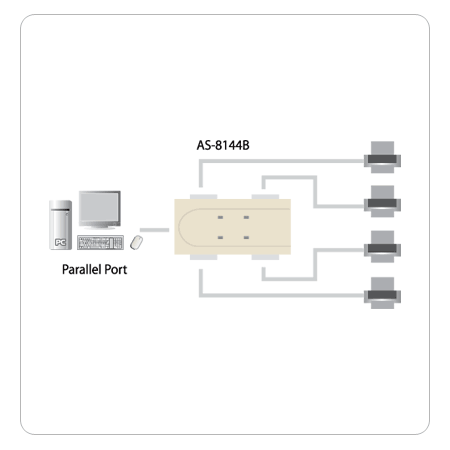 - Реверсивный режим «1-вход-4-выхода» или «4-входа-1-выход» (4 ПК > 1 принтер или 1 ПК > 4 принтера).